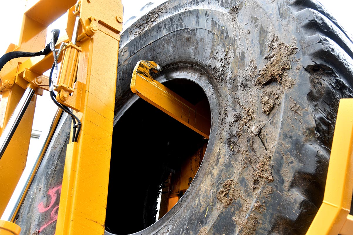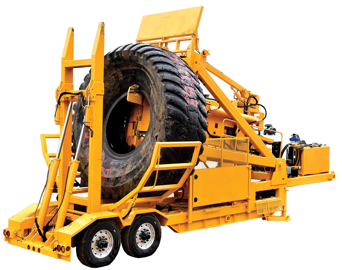 El extractor de talones definitivo del mercado, el Eagle OTR Debeader patentado, está diseñado para extraer los haces de talones de neumáticos radiales todoterreno (OTR) que varían en tamaños desde 20.5/R25 hasta 59/80R63. Las placas de troquel ajustables hidráulicamente garantizan el tamaño adecuado de apertura para los diferentes tamaños de talones en diferentes tamaños de neumáticos. Se incluye una cizalla hidráulica para recortar cualquier exceso de goma del talón que pueda haber quedado debido a una pared lateral débil.