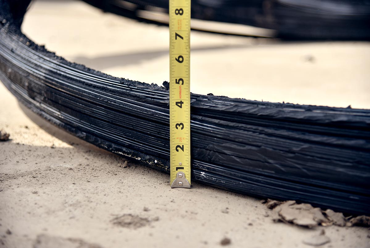 Se proporciona una grúa hidráulica para retirar los alambres de talón del gancho y distribuirlos fuera de la máquina. Se utiliza un control remoto inalámbrico para brindar mayor seguridad al operador y garantizar que pueda maniobrar alrededor de la máquina según sea necesario.